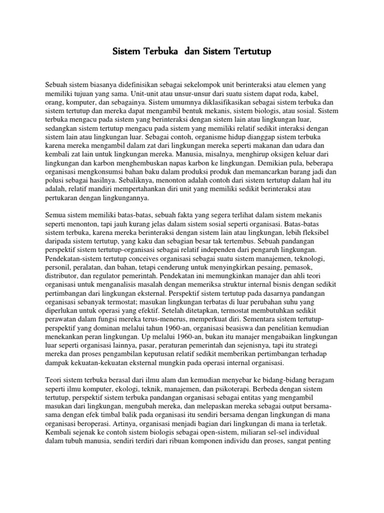 Sistem Terbuka Dan Sistem Tertutup Pdf