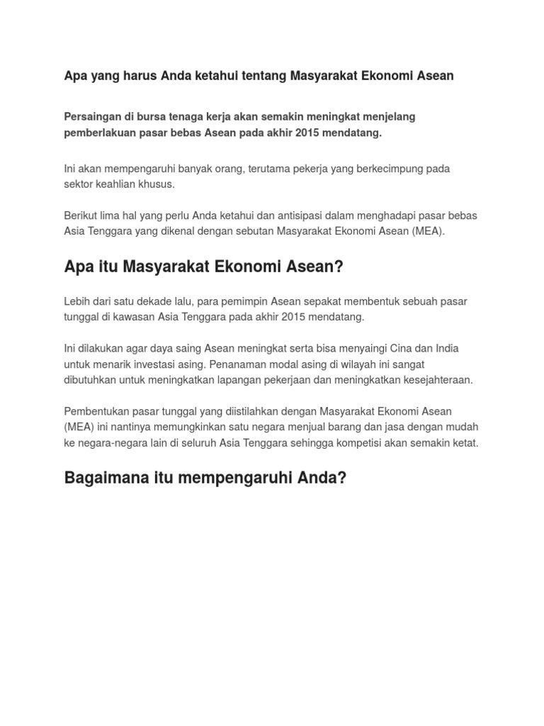 Apa Yang Harus Anda Ketahui Tentang Masyarakat Ekonomi Asean Pdf
