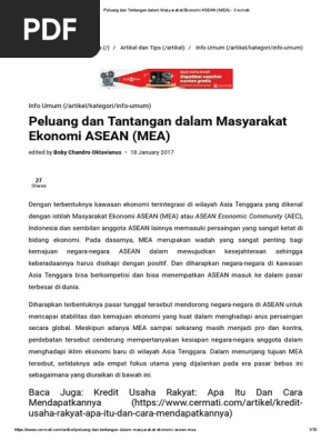 Peluang Dan Tantangan Dalam Masyarakat Ekonomi Asean Mea Cermati Pdf