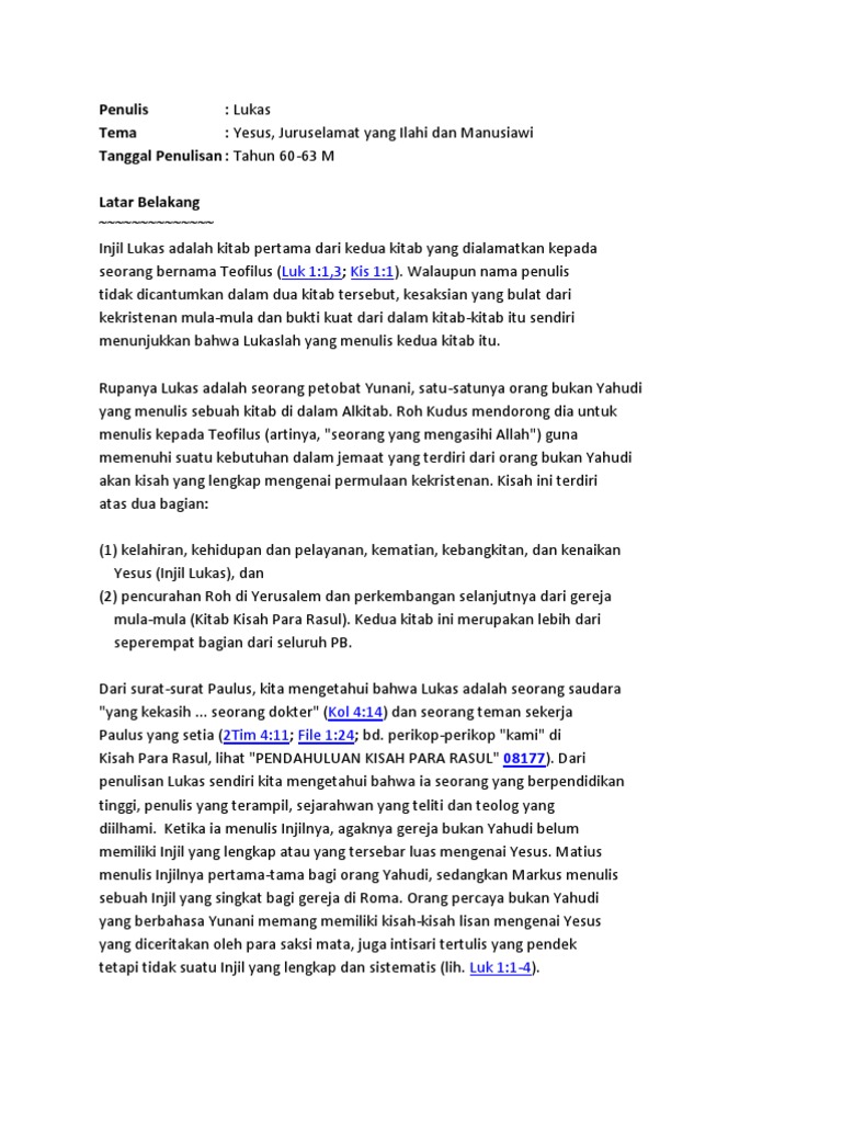 1 Injil Lukas digolongkan sebagai Injil Sinoptik bersama dengan Injil Matius dan Injil Markus.