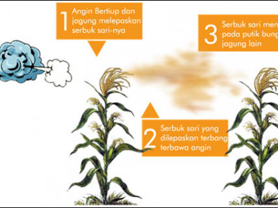 Tetangga : Menempelnya serbuk sari dari suatu bunga pada kepala putik bunga lain yang masih berada pada satu tumbuhan ( bunga jagung )
