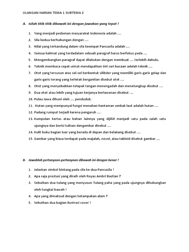 Soal Bahasa Indonesia Kelas 6 Dan Kunci Jawabannya Semester 2.