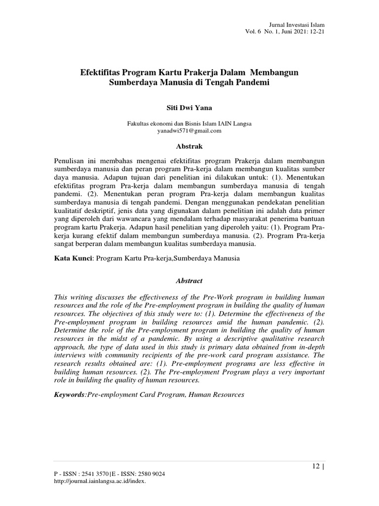 Efektivitas Program Kartu Prakerja Sdm Pandmi Pdf