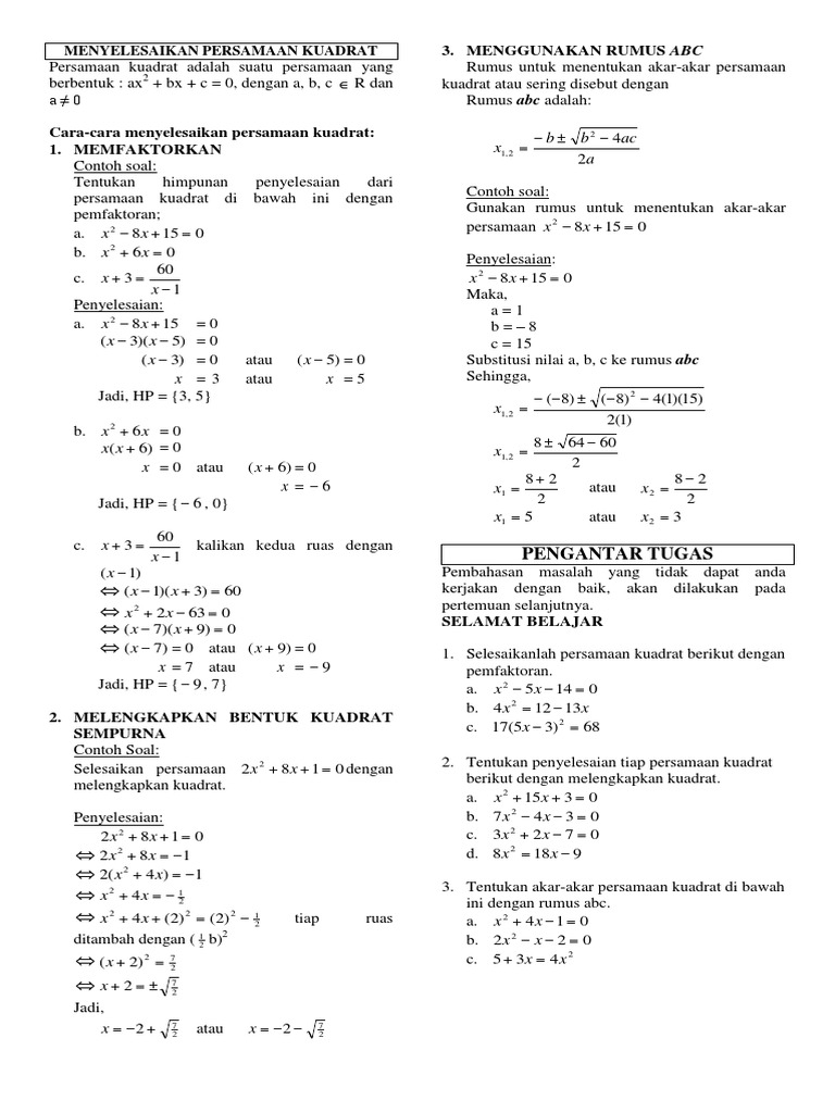 Selesaikan Persamaan Kuadrat Berikut Dengan Metode I P